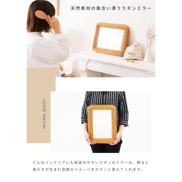 鏡 壁掛け 姿見 ウォールミラー 壁掛け鏡 姿見鏡 壁掛けミラー ミラー おしゃれ ラタンミラー 壁鏡 ラタン かがみ 籐 四角 長方形 縦長 かわいい シンプル