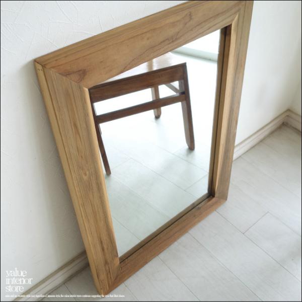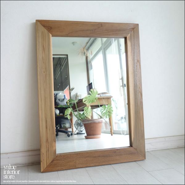 古材 鏡 オールドチークフレームミラー壁掛80H レトロ 天然木 ハンドメイド 手作り 総無垢 壁掛け 銘木 送料無料 幅60cm x 縦80cm