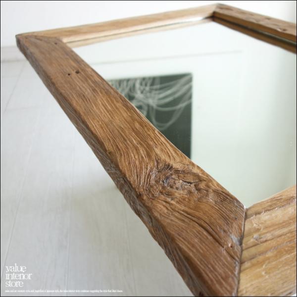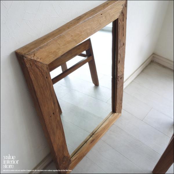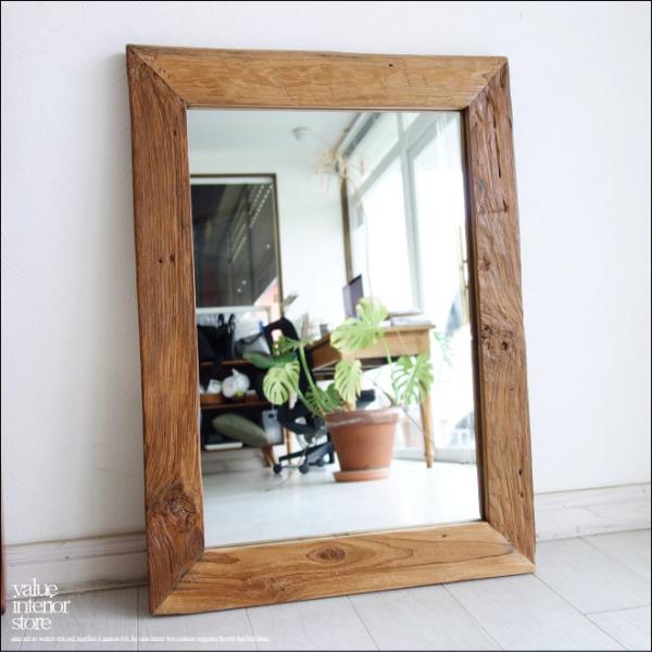 古材 鏡 オールドチークフレームミラー壁掛80I レトロ 天然木 ハンドメイド 手作り 総無垢 壁掛け 銘木 送料無料 幅60cm x 縦80cm
