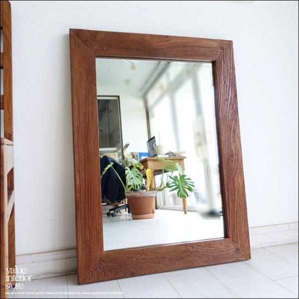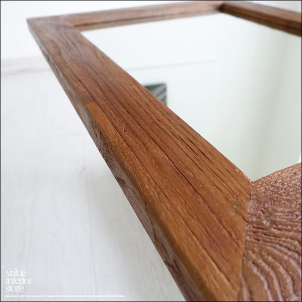 古材 鏡 オールドチークフレームミラー壁掛80L レトロ 天然木 ハンドメイド 手作り 総無垢 壁掛け 銘木 幅60cm x 縦80cm