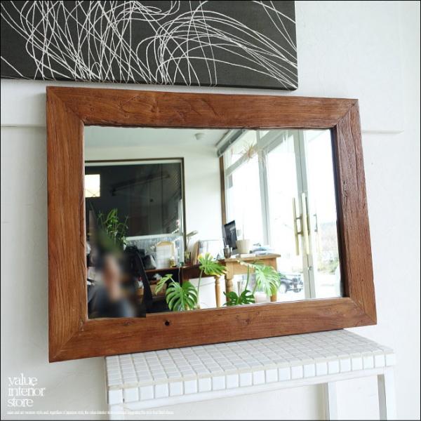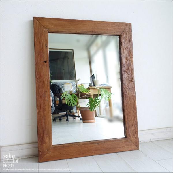 古材 鏡 オールドチークフレームミラー壁掛80/U 壁掛けミラー レトロ 手作り 総無垢 自然な様 古材家具 送料無料 W60 x H80cm