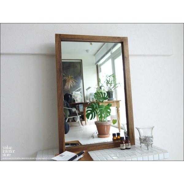 チークフレームミラー壁掛60W 鏡 壁掛けミラー 什器 手作り ハンドメイド 新品 ナチュラル 洗面所 無垢材 シンプル 「 送料無料 」