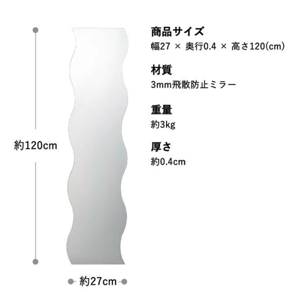 ウェーブミラー 全身鏡 ミラー ウェーブ全身ミラー 姿見 鏡 ウォールミラー 波形ミラー 壁掛け ミラー 高さ95cm 120cm 150cm デザインミラー ニュアンスミラー