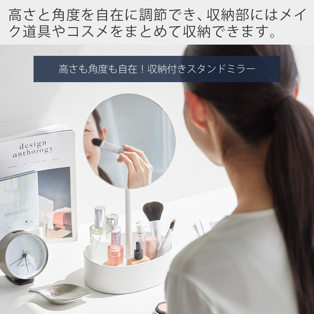 山崎実業 公式 タワー 高さと角度が調節できる収納付きスタンドミラー tower 卓上 収納 おしゃれ 鏡 調整 小物入れ トレー 10418 10419