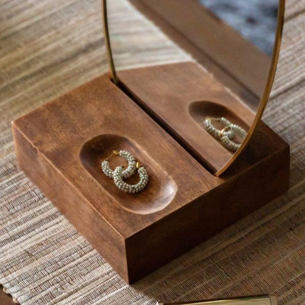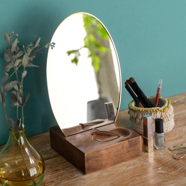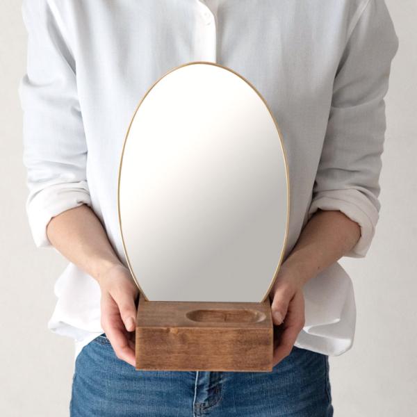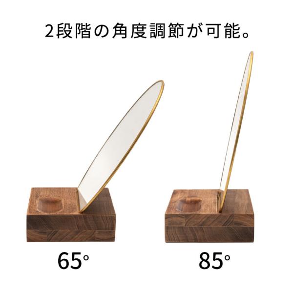 卓上ミラー 楕円形 オーバル型 鏡 真鍮フレーム 天然木 角度調整可 アンティーク調 化粧鏡 おしゃれ メイク 66900
