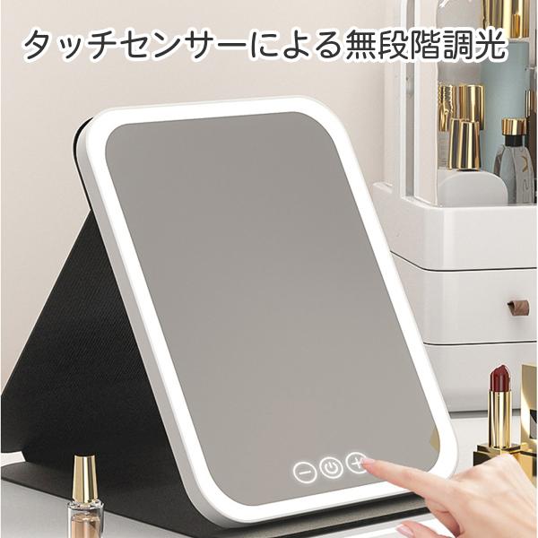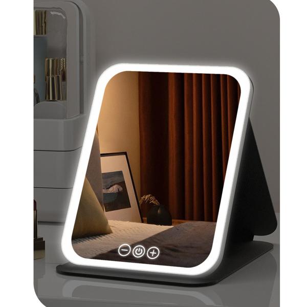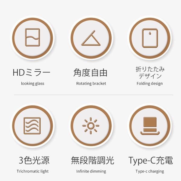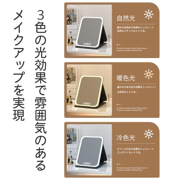 女優ミラー 卓上ミラー 日光女優ミラー 携帯型 化粧鏡 三色調光 LEDミラー 明るさ調節 タッチボタン 記憶機能 折りたたみ式