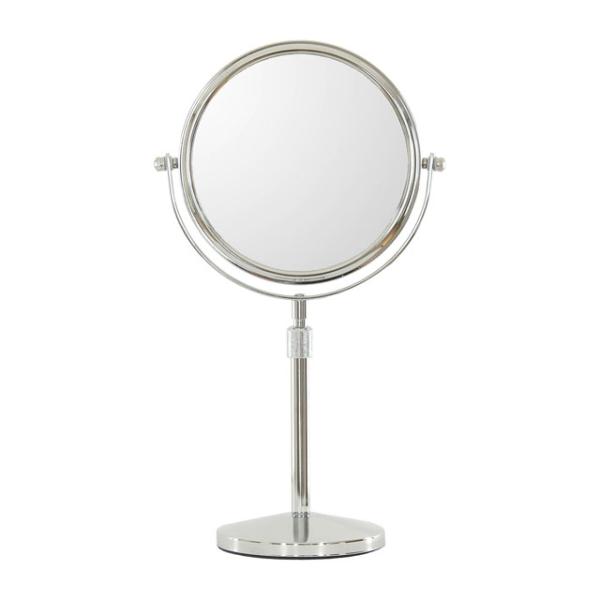 高さ調節できる 昇降式 両面使用 3倍拡大鏡付き 卓上ミラー シルバー色 幅20cm×奥行12cm×高さ36〜45cm