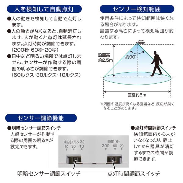 シーリングライト LEDミニシーリングライト センサー付き 100形 1450ルーメン 昼光色|LE-Y14DG-W-PIR 06-5512 オーム電機