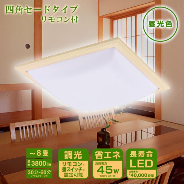 LEDシーリングライト 和風 角形 四角セードタイプ 8畳用 調光 リモコン付 昼光色|LE-W45D8G-W 06-5594 オーム電機