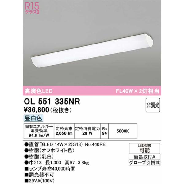OL551335NR オーデリック キッチンライト FL40W×2灯相当 昼白色