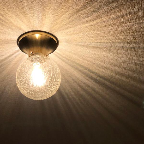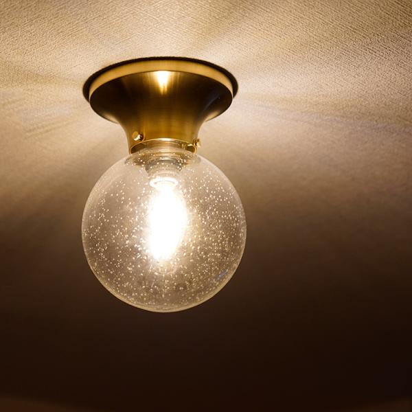 シーリングライト ガラス 1灯 真鍮 E17 LED 照明器具 アンティーク レトロ ノスタルジック 玄関 トイレ 廊下 間接照明 天井照明 北欧 ホテル風 おしゃれ 丸
