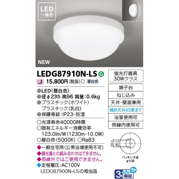 ○[法人限定][即納在庫有り] LEDG87910N-LS 東芝 LEDアウトドアシーリング 昼白色 [ LEDG87910NLS ]
