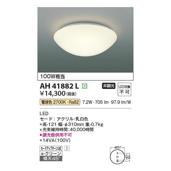[法人限定] AH41882L コイズミ KOIZUMI 小型シーリング 白熱球100W相当 非調光 電球色 [ AH41882L ]