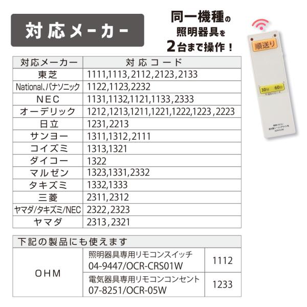 オーム電機 OCR-FLCR3【品番:08-3099】蛍光灯シーリングライト専用照明リモコン 国内13メーカー対応 ※Z区分