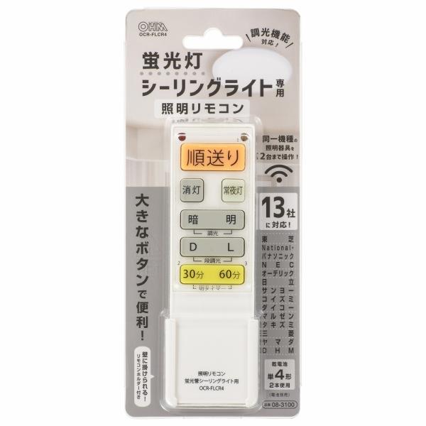 オーム電機 OCR-FLCR4【品番:08-3100】蛍光灯シーリングライト専用照明リモコン 国内13メーカー対応 調光機能対応 ※Z区分