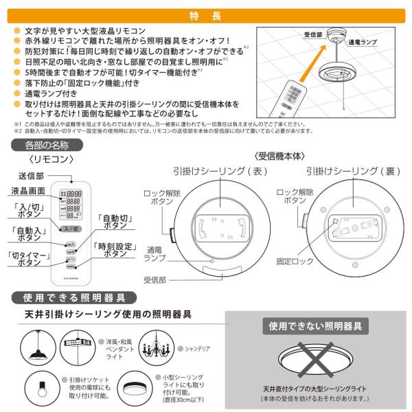 リモコンスイッチ ペンダント型照明器具専用(大型液晶/自動オン・オフ/固定ロック機能付/ホルダー付/単4形×2本使用)_07-8780_OCR-RSH01W2_OHM(オーム電機)