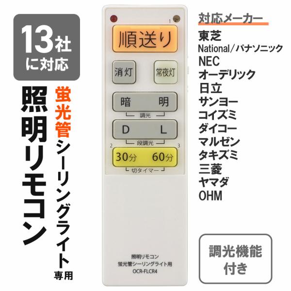 蛍光灯シーリングライト専用照明リモコン 国内13メーカー対応 調光機能対応|OCR-FLCR4 08-3100 オーム電機