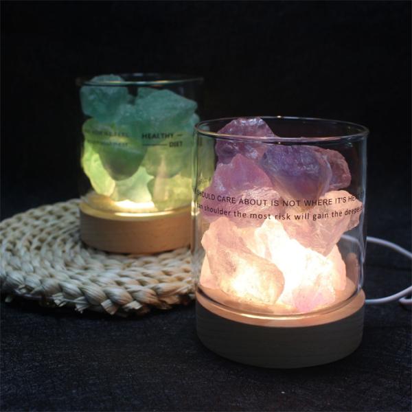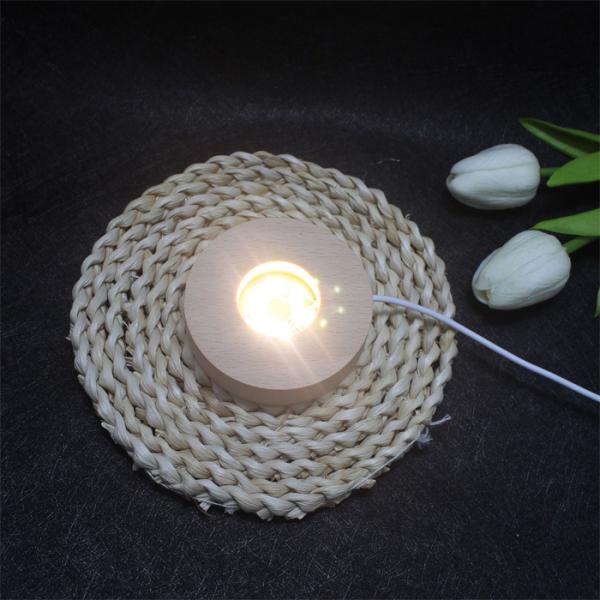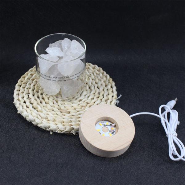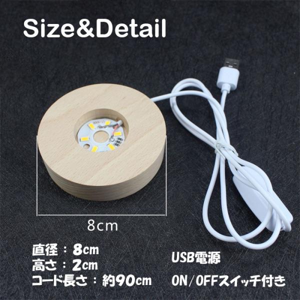ディスプレイ用LEDライト 木製台座 透明な天然石のディスプレイに 丸型ランプ 間接照明 本体直径約8cm コード長約90cm