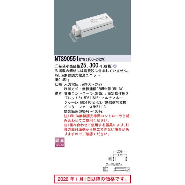 [法人限定] NTS90551 RY9 パナソニック WiLIA無線調光電源ユニット 調光タイプ [ NTS90551RY9 ]