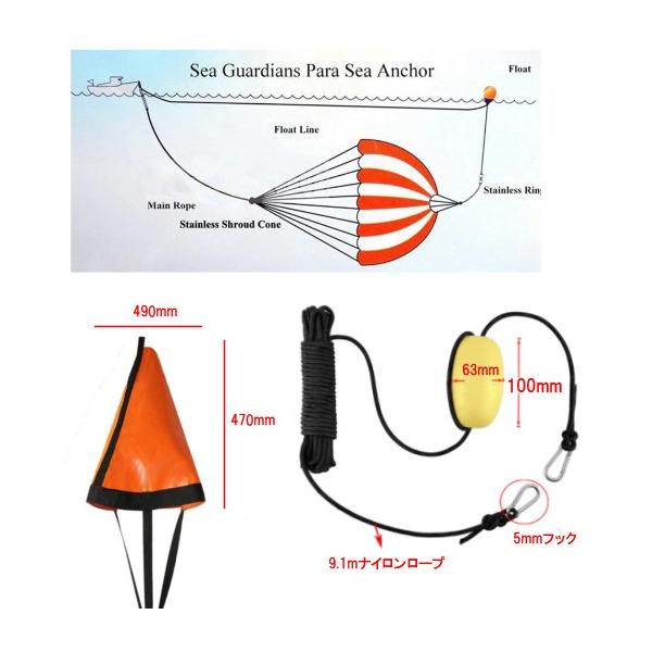 【並行輸入品】ブイ付 シーアンカー オレンジ 浮き フロートハーネス ロープ ボート カヤック ヨット 釣り サップフィッシング __