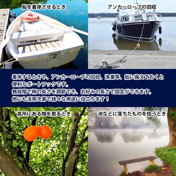ボートフック アルミ製 無段階 伸縮 1220mm-2200mm 2.2m ゴムボート ボート 漁船 ヨット 船 係留 着岸 伸びる マリーナ