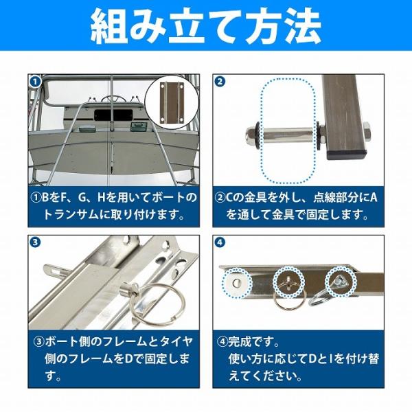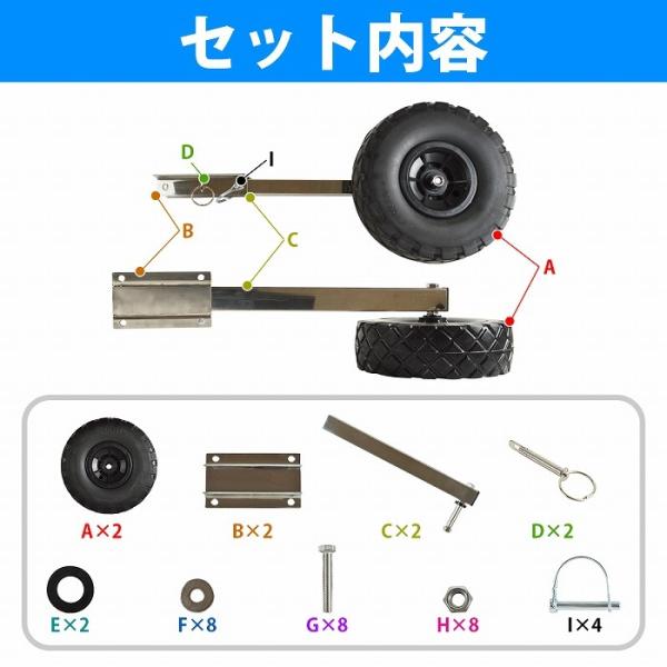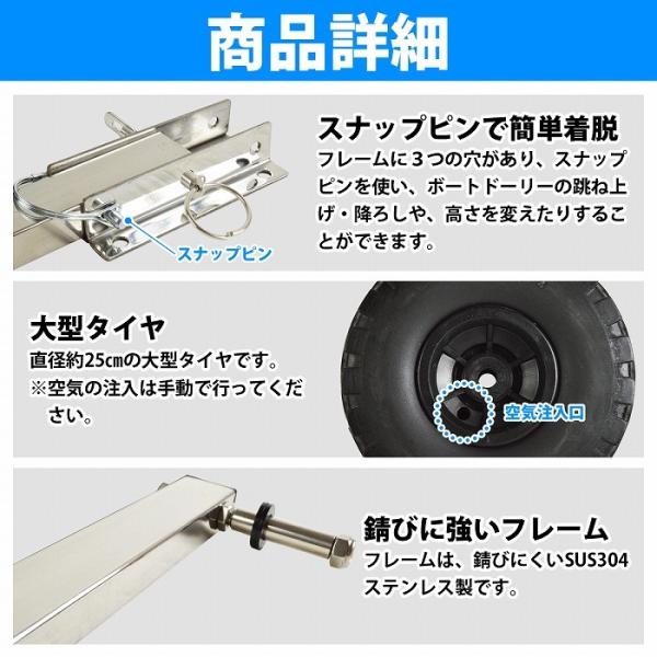 跳上式 ボート ドーリー ステンレス製 ノーパンクタイヤ 幅広80mm 直径250mm 大型タイヤ ワンタッチロック 小型ボート ゴム