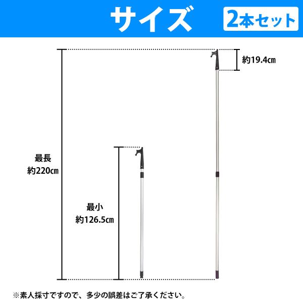 『2本セット』ボートフック アルミ製 無段階 伸縮 1220mm-2200mm 2.2m ゴムボート ボート 漁船 ヨット 船 係留 着岸 伸びる