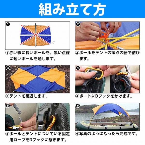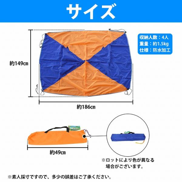 汎用 ゴムボート テント 4人乗り用 ブルー×オレンジ パラソル 雨除け 日除け 釣り キャンプ レジャー コンパクト 撥水 防水
