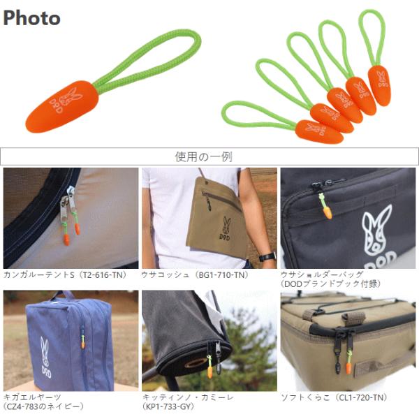 DOD ファスナープルタブ ニンジン型 つまみやすい形状 どこにでも取り付けられる 開閉がしやすくなる ニンジンプルプル(5個セット)NP1-801-OR ネコポス【NEW】