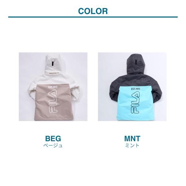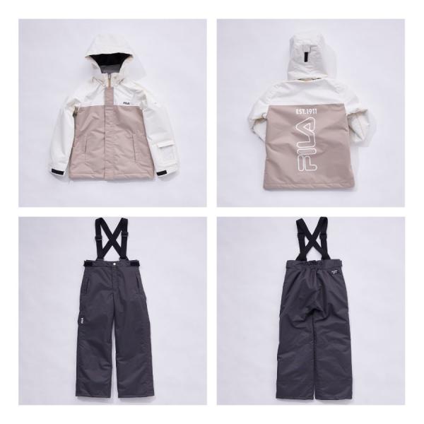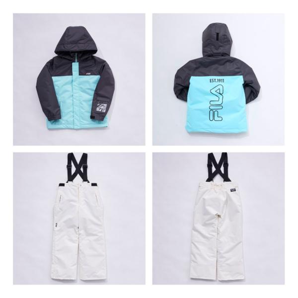 スノーウェア上下セット キッズ ユニセックス 中綿入り バイカラー 防寒 保温 ベージュ ミント FILA フィラ 130 140 150 160 142716 秋 冬