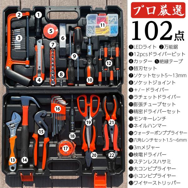 工具セット 102点 自転車用 家庭用 自動車 diy 車 バイク ツールボックス ツールセット 工具セット