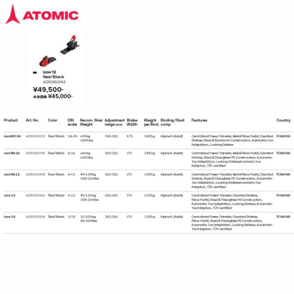 アトミック ビンディング 2026 ATOMIC ICON 12 アイコン アルペン