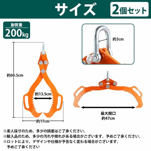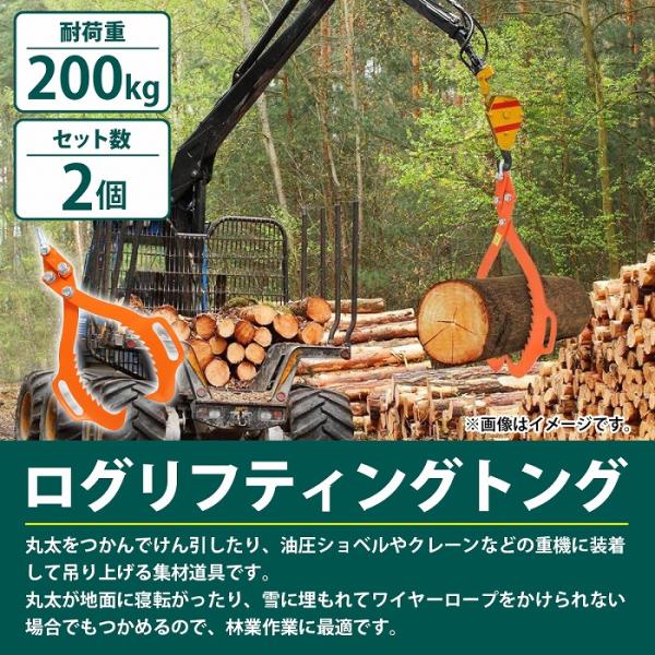 『2本 開口 50cm ハンドル付』丸太 トング 木材 原木 リフティング トング 伐採 集材 林業 薪 薪割 移動 ハンド リフト リフター