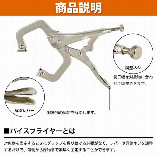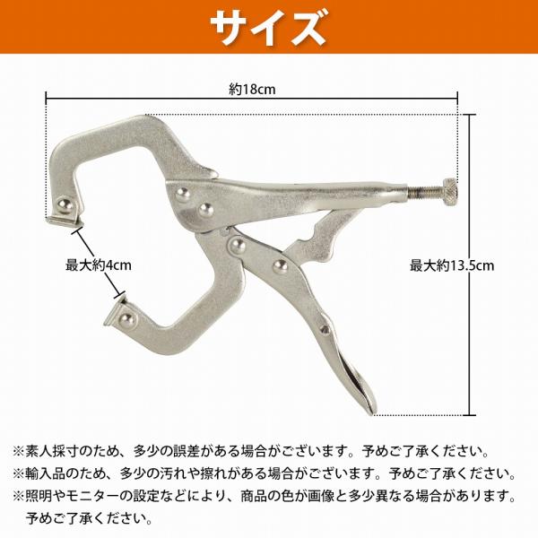 2個set C型 バイスプライヤー 18cm 6インチ 溶接 固定 万力 クランプ 工具 板金 配管 大工 DIY バイスグリップ パンチ 180mm