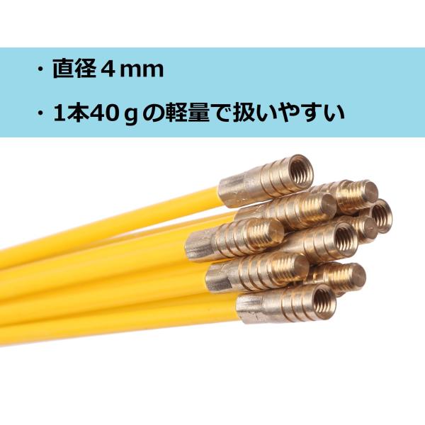 ケーブル索引具 1m×10本 配線 通線ワイヤー 配線通し 配線ガイド ロッド 入線 ケース付き 先端アタッチメント付属 MK-005
