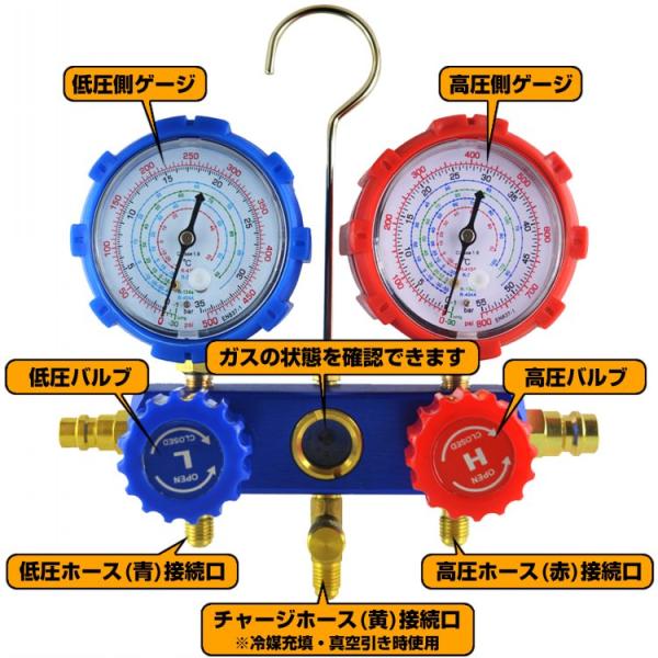 エアコン ゲージマニホールド ガスチャージ エアコンガスチャージ エアコンガスチャージセット r22 マニホールドゲージ エアコン用マニホールド r404a 車 冷媒