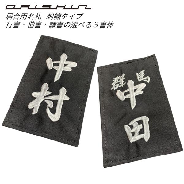 居合道 杖道 名札 刺繍 ゼッケン 黒生地 白刺繍 選べる書体 全3種 大真