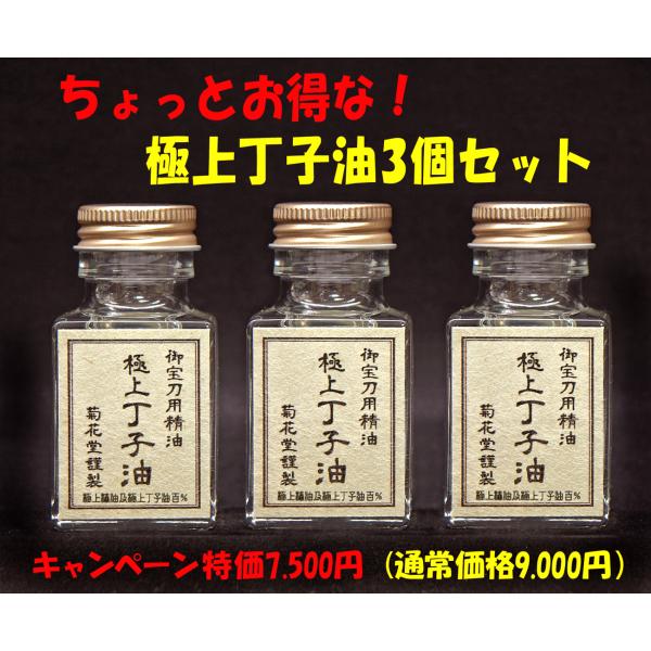 ちょっとお得な!『極上丁子油3個セット』 (菊花堂刀剣油、丁子油、龍神油、刀油、刀剣油、御刀油、刀剣手入れ具)