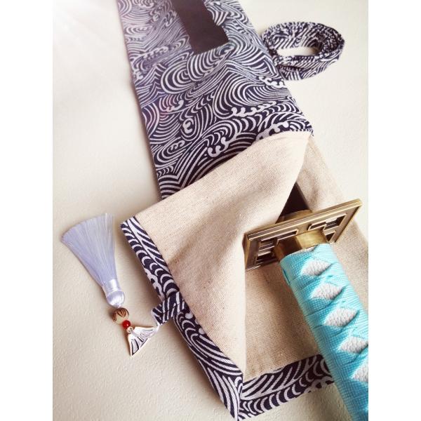 KiumiToys刀袋 剣袋 和柄 携帯用 キャリーバッグ バックストラップ 肩掛け付 模造刀 居合刀 竹刀 日本刀 飾りストラップ付 幅15cm SB03