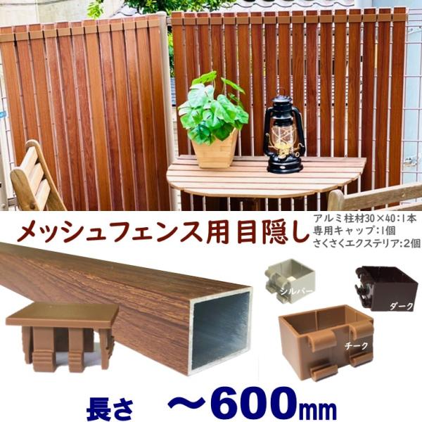 メッシュフェンス用目隠し 木目調 後付け 簡単取付 チーク アルミ柱材30X40XL600mm 厚み1.8mm キャップ付 さくさくエクステリアセット