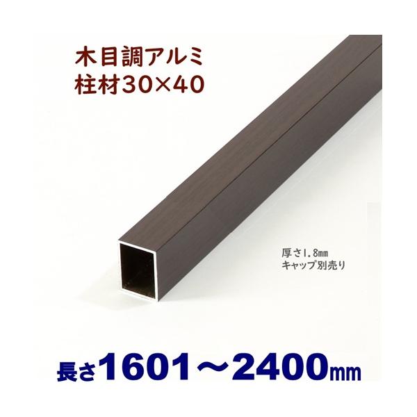 アルミ角柱 木目調 柱材 30X40XL2400mm 厚み1.8mm ダーク 格子 フェンス 支柱 角パイプ 目隠し