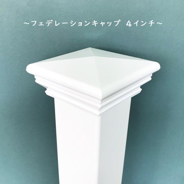 キャップ フェンス 柱飾り ホワイト 白 DIY PVC 洋風 アメリカンフェンス ハンドレールフェンスT型 フェデレーションキャップ4インチ バイナルフェンス