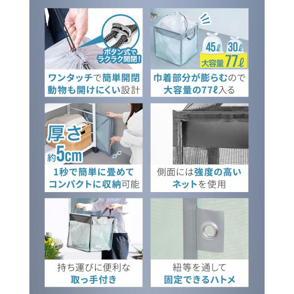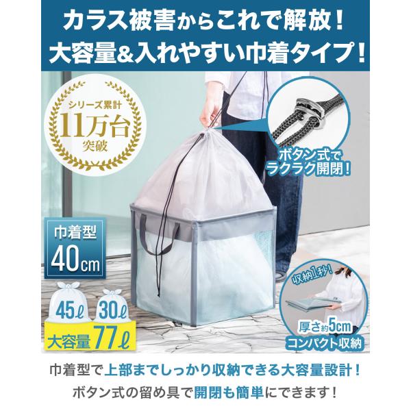ゴミ収集ボックス ゴミネット カラスよけネット 折りたたみ 幅40cm 巾着 45Lゴミ袋x1袋分 カラス対策 ゴミステーション ごみ収集箱 防鳥網 送料無料