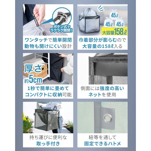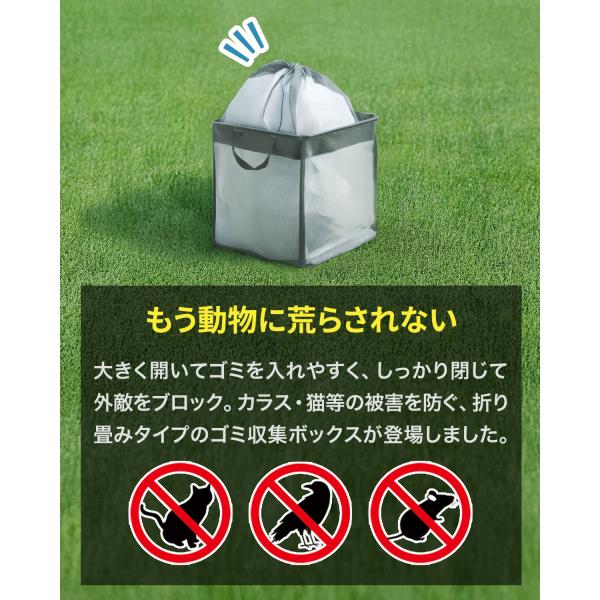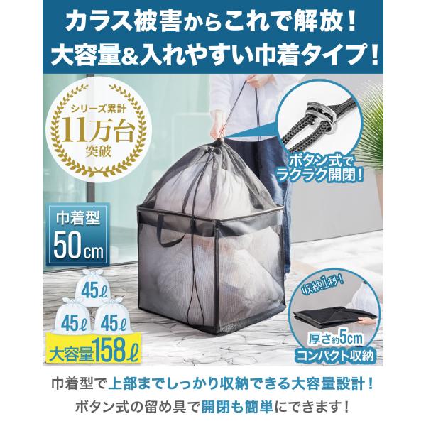 ゴミ収集ボックス ゴミネット カラスよけネット 折りたたみ 幅50cm 巾着 45Lゴミ袋x3袋分 カラス対策 ゴミステーション ごみ収集箱 防鳥網 送料無料