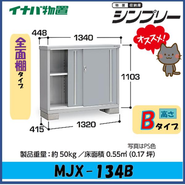 イナバ物置 シンプリー 収納庫 MJX-134B 全面棚タイプ ※東海地区(岐阜県・愛知県・三重県(一部地域を除く))限定販売※