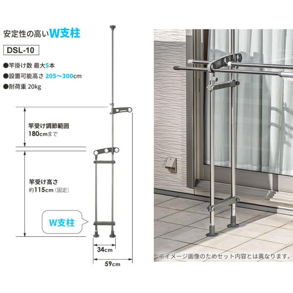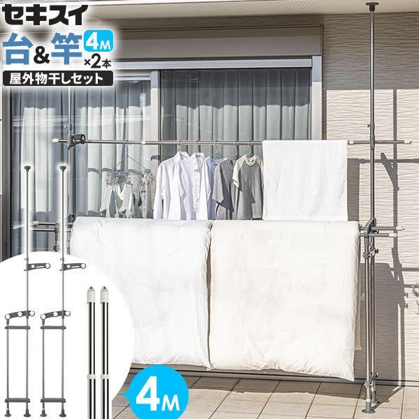 セキスイ ベランダ 物干しセット【竿2本付き】 ステンレス 突っ張り 物干し台 & 物干し竿 2.7〜 3.8m DSL-10 + STN-4N×2本