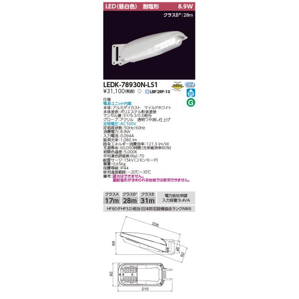 [法人限定][即納在庫有り] LEDK-78930N-LS1 東芝 LED 防犯灯 耐塩形 昼白色 [ LEDK78930NLS1 ]