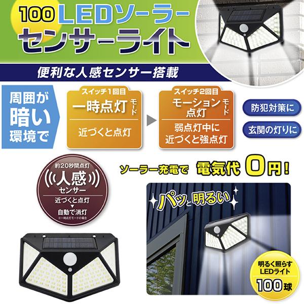 センサーライト 屋外 LED 100灯 防水 ソーラーライト 人感 自動点灯 ポーチライト 外灯 玄関灯 明るい 駐車場 防犯 ガレージ 送料無料 7M◇ 100LEDライト