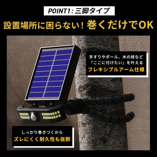 クリップ式 ソーラーライト 三脚 フレキシブルアーム 人感センサーライト 人感センサー クリップライト ソーラー充電 屋外用 防水ライト 爆買