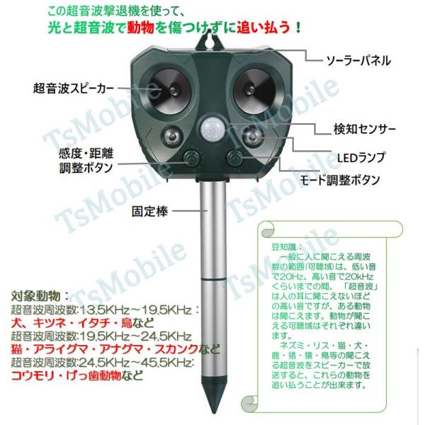 猫よけ 超音波動物撃退 光 動物避け 光 動物糞尿対策 害獣 追い払う ソーラー式&USB充電可能 野生動物被害 防滴 猫 犬 ネズミ キツネ 鳥 猫 イノシシよけ 安い